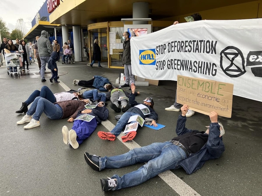 Ce samedi 26 octobre, à 14 h 30, le mouvement Extinction Rebellion a organisé cette action pacifique, pour dénoncer le modèle économique d’Ikea, basé « sur la déforestation et la surconsommation », estime Vala, membre du collectif.