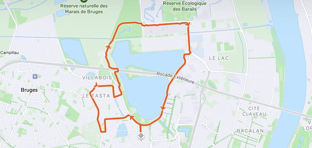 Au sud du lac, la course s'est déroulée sur le trottoir et la piste cyclable, les travaux du Petit Tour du Lac privant les coureurs de la prairie habituelle des berges du lac à Ginko. Afin de garantir la sécurité des coureurs et pour la plus grande « joie » des automobilistes, l'avenue Marcel Dassault a été, pour la N-ième fois, fermée à la circulation.
