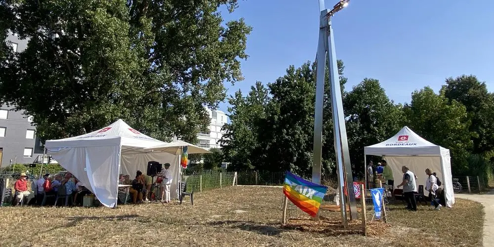 La communauté pacifiste bordelaise commémore chaque année au Lac de Bordeaux les plus de 200 000 victimes des bombes nucléaires lâchées par les États-Unis sur les villes japonaises d’Hiroshima et Nagasaki, les 6 et 9 août 1945. À l’initiative de l’association L’Appel des cent pour la paix, les adhérents et quelques sympathisants se retrouvent face à la sculpture « La Paix », donnée à la Ville par l’artiste japonais Kiyoyuri Kikutake* il y a trente ans.